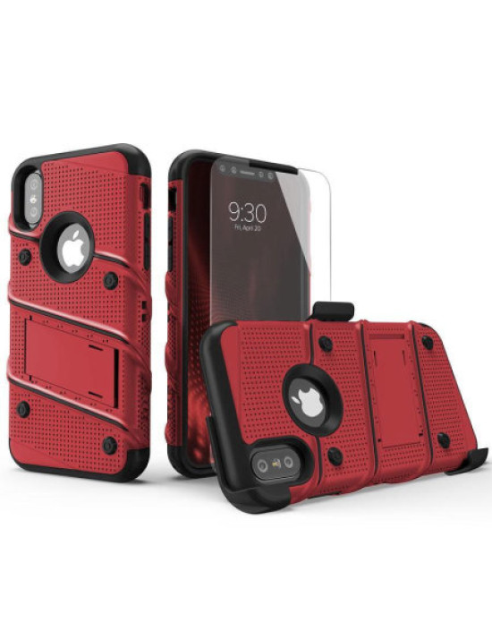 Zizo Bolt iPhone XS Tough Case & Screen Protector - Red / Black
