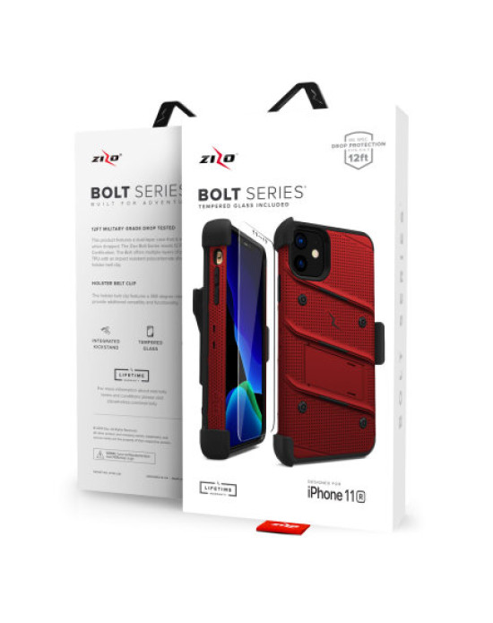 Zizo Bolt Series iPhone 11 Case & Screen Protector - Red/Black